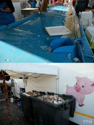 Succès total pour ce banc de poisson, dont le stock de coquilles Saint Jacques a été acheté et nettoyé à la demande des clients.