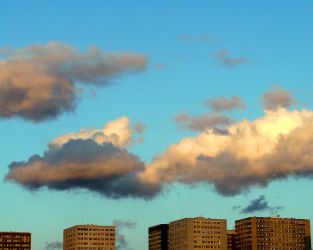 Les constructions de l'homme tutoient celles de la nature? L'atmosphère est soviétique, hésitante entre espérance et gravité. Derrière, le ciel garde son calme et joue la toile de fond?