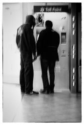 Je voulais prendre une dernière photo de mon fils avant qu'il ne s'envole pour 1 année en Australie. Juste au moment o? il allait passer devant ce triangle jaune qui nous rappelle que, dans la vie, il faut avancer. Au moment o? il arrive vers moi, mon fils me lâche: laisse-moi partir Papa.