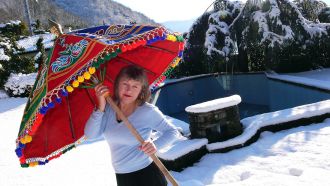 En attendant l'été, Susan essaye déjà un peu le nouveau parasol