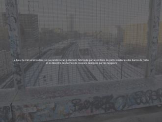 le bleu du ciel serait radieux et sa pureté serait justement fabriquée par les milliers de petits obstacles des barres de métal et le désordre des taches de couleurs déposées par les taggeurs