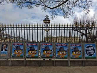 Devant la mairie de Bordeaux, les panneaux électoraux se transforment en support d'action artistique?? ironique, la veille du vote.