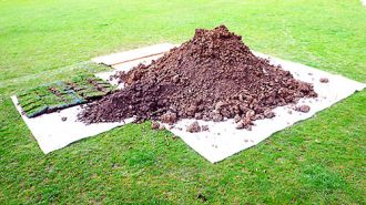 Pièce temporaire de land-art dans la Bäckeranlage, le petit parc du quartier