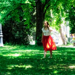 rouge nymphe fâchée foulant de son pied léger l'herbe chaude