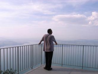 Trois. Virgule quinze mètres, seconde. C'est l'ascenseur le plus rapide d'Europe. A pic sur le lac des quatre cantons. J'essaye de m'en remettre. Regarder au loin. Déclencher le retardateur en guise de thérapie. L'épaule droite ne veut rien savoir.
