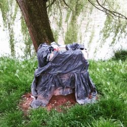 Adam et Eve, couchés sur la macadam.