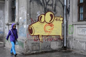 graffiti sur le mur de l'Université de Bucharest, Roumanie