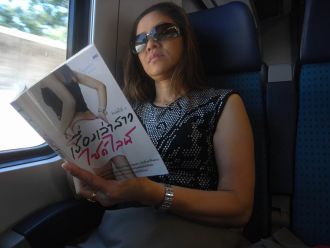 Ce roman thai a l'air prenant. C'est à peine si elle s'en détache pour la photo.