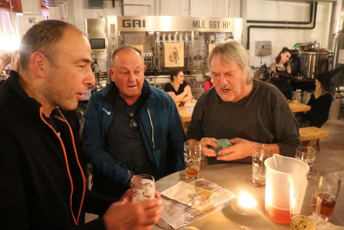 02.11.2025 - St-Ursanne - Halloween à la Tonnebière - Milieu de soirée, Gérard renversa sa bière Péritonnique sur la table. Serge et Denis sont stupéfiés !