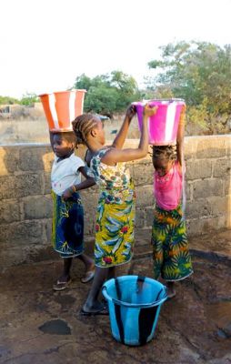 Les filles à la fontaine après l'école. À la périphérie de Bamako.
