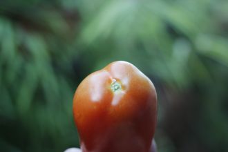 Tomate com fundo verde.