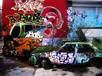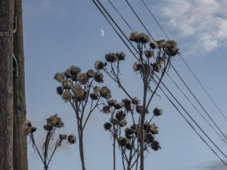 Une marguerite qui fleurit sur une benne à ordures, benne à ordures posée de guingois au milieu d'un bordel indescriptible. La lumière qui traverse des morceaux de plastiques déchirés, des grilles rouillées, produit un effet scénique des plus remarquables. Cette marguerite (en fait le logo d'une entreprise de construction) est mise en lumière comme une star. Je photographie cette marguerite oxymore.