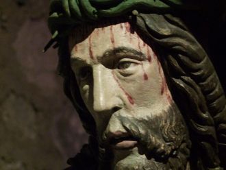 Dans la crypte... un Christ porte sa croix.