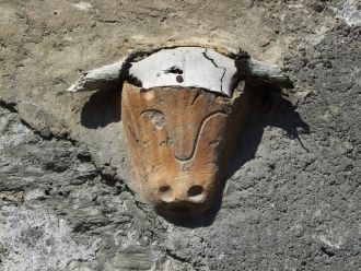 Tête de bovidé sur un mur de Saint-Pierre-de-Clages
