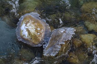 L'eau de la rivière, lambeaux de glace...