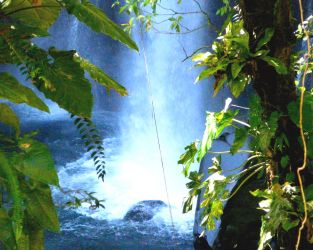 Après une longue marche à travers la forêt tropicale, la frustration fut grande de ne pouvoir s'approcher davantage de cette chute d'eau et de son bassin de baignade, à cause d'un important et dangereux éboulement de terrain?