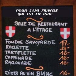 Bonne appétit Francis ! Je pense à toi et à ces petits plats indiens que tu dégustes. Je sais qu'un tchai ne remplace pas un petit verre de blanc sur une terrasse des Pâquis mais, courage nous pensons à toi derrière une bonne fondue......