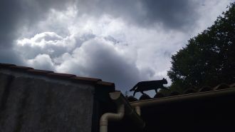 Portrait incomplet de chat qui guette l'oiseau.