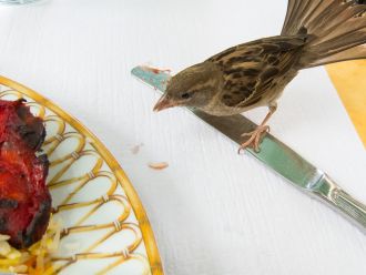 -Sont sans gêne ces piafs, arrogants comme pas deux, rentrent dans les boulangeries, vont se servir dans nos assiettes... geste de la main pour les balayer .