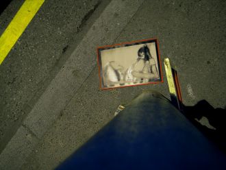 l'ordinateur au bureau, je rentre avec mon vélo, sans photo pour upj. Une légère pluie commence à tomber, je traverse un rail du tram et voilà, un sujet pour upj?