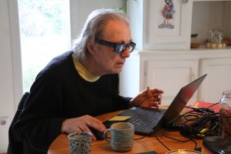 Privas - Un upjiste en pleine concentration sur le choix de ses photos pour l'expo de Rompon le samedi 1 février 2025.