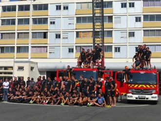 Ce n'est pas un congrès de pompiers. Ce sont les rugbymen de Bourgoin Jallieu en stage à La Rochelle.