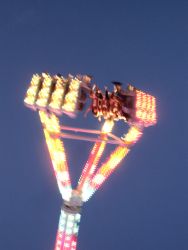 Depuis une expérience inattendue il y a quelques années, j'ai toujours une petite appréhension à me tenir sous ce genre d'attraction: Et si l'estomac de la demoiselle là haut se retournait soudainement sans qu'elle ne serre les dents? D'ailleurs, même si elle les serrait ça ne changerait pas grand chose de mon point de vue, puisqu'elle ne pourrait retenir que les gros morceaux. Non, il faudrait qu'elle ferme la bouche, le nez et les oreilles, ce qui fait déjà pas mal de conditions! Donc je regarde bien et me tiens prête à déguerpir au moindre signal de chute gastrique.