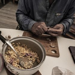 peler, trancher, débiter, mélanger, cuire, jeter sur la table ... un boulot d'écriveur du quotidien