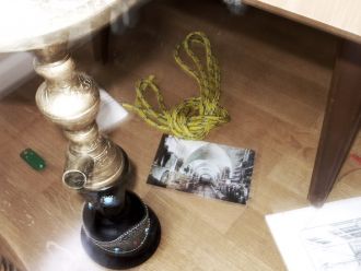 porte-clé en plastique, chicha, corde nylon jaune, corde de guitare, catacombes de Palerme