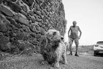 Alors ça se passe sur une terrasse. On mange. Déjeune disent les français. Un cordon bleu qui fait la planche sur un risotto. Un mec passe, zieute nos assiettes. Repasse dans l'autre sens, rezieute. Puis s'arrête, fixe avec insistance nos plats du jour encore une fois. Laissez-vous faire, que je jette, c'est délicieux. Il s'assied. Sans un mot. Je déplace mon pied droit qui touche un truc mou. La queue d'un chien. L'ai pas vu. Il est à vous ? C'est quelle marque ? On dit race. Pendant ce temps Boris envoie une image de son laptop qu'il a sur les genoux pendant que je mange, discute et considère le chien. Je dégaine mon appareil. Appelle la bête. Qui s'en fiche d'abord. Il doit avoir d'autres centres d'intérêts. Je photographie alors sa vie de chien. Rengaine. Souris à son maître qui se lance dans une histoire de combat féroce entre son chéri et un renard qui lui aurait arraché à coups de dents son petit manteau d'hiver retrouvé ensanglanté au milieu d'un champ enneigé.