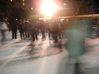 Down Town. Incroyable, même ici on ce les caille? bon moins qu'en suisse! Là, je fais du patin à glace.. la piste est assez petite, pourtant on tourne tous en rond comme des souris !
