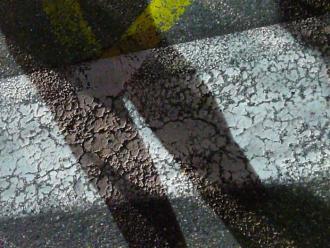 Il déboula dans la rue noire en shootant sur tout ce qui émergeait de sa nuit. La large tignasse crépue capturait à elle toute seule la maigre lumière et scintillait sur le gris des maisons, entourée d'une aura surnaturelle de gouttelettes de sueur.