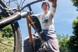 Cramponné au guidon d'un vélo électrique, j'essaye de semer mon fils. Sans succès. Soit la batterie est à plat. Soit c'est moi.