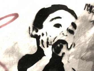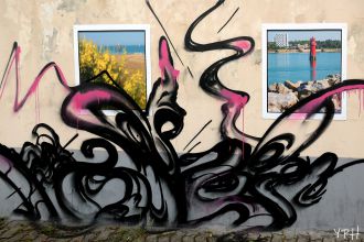 J-145 du CF : arrogant et magnifique graf sur les photos de Pascal Bernard affichées dans l'avenue.
