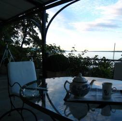 Elle regarde au loin,distrète.