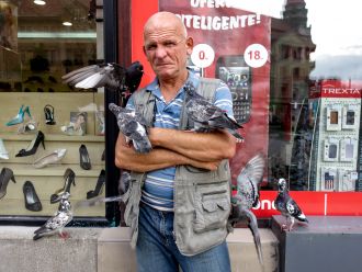 L'homme-pigeon est en fait un homme-balance. Il vous pèse pour une vingtaine de centimes.