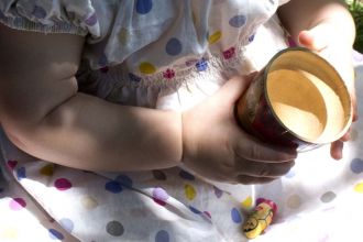 Denise, artiste infatigable, promène ses créations en landau.