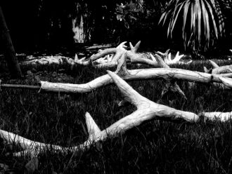 Les nègres approchent, leur peau tendue et nette. Il y a les grains bruns-cacao du paysage amer et par dessus leurs yeux ovales-amande brillants.