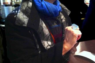 Je dis : Syrie ? Damas ? Il me regarde, interrogateur, prend un papier et écrit : 17 heures 45. Arrivent les pâtisseries et le thé Puis l'homme écrit un mot en turc sur son papier et veut savoir ce que ça veut dire en anglais. I don't speak turkish, I don't know. Alors il fait venir son serveur qui traduira les mots église, mosquée, prière, merci beaucoup, je vous en prie, au revoir.
