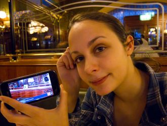 Regarde Papa c'est extraordinaire: mon téléphone t'indique dans quelle direction marcher pour trouver l'arrêt de bus.