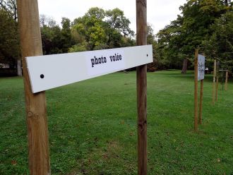 Parc de la mairie de Périgny : une fois de plus des photos installées en plein air sont volées. Mais cette fois ci le voleur n'a pas perdu sa carte d'identité sur le lieu de son" exploit"...