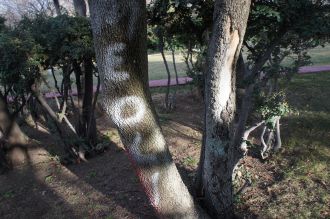 Arbre graffiti, pas beaucoup d'espace, graffiti succinct, ombres et lumeires.