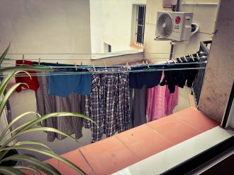 Enfin un peu de soleil sur le trottoir détrempé par la pluie? Le voisinage est à la fête et se fait beau dans le miroir?