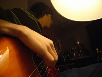 Prometteur, ce bassiste de 15 ans. Comme Zidane qui court avec le ballon sans regarder ses pieds, il n'a d' yeux que pour les autres musiciens.