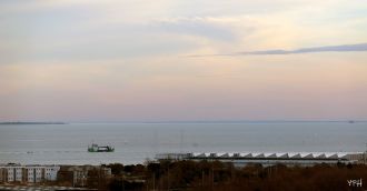 La grue chargeant les éoliennes.