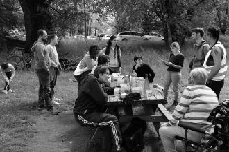Puis vint le silence, pour nous permettre de reprendre pied et le souffle. Les regards, boules de billards, rôdaient sur la table, faisant tinter les verres de vin à moitié vides. Les mains se baladaient comme des crabes affamés lancés à l'assaut des plats de viandes qu'ils pillaient sans vergognes. Les bouches, encombrées de nourritures, mastiquaient les points d'interrogations qui cherchaient à prendre leur élan sur le tremplin de la langue, et, on pouvait, en collant son oreille contre la mâchoire de son voisin, les entendre crisser sous la pression des dents.