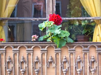 C'est votre géranium qui m'enchante Monsieur. Vous m'entendez ? Monsieur...ne vous inquiétez pas. Vous m'entendez ? C'est le rouge qui me plaît... je photographie le rouge de votre géranium....MERCI !!!