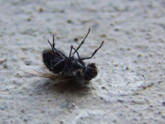 Une mouche à l'envers sur le rebord de la fenêtre tel un avion qui loupé son atterrissage.