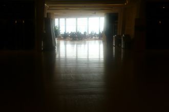 Vu de la salle XXIV, supposément o? la négo officielle se passe; mais en réalité, c'est là, autour d'un bon café? est-ce la lumière?