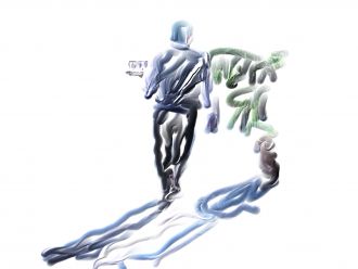 Mais qu'écrit-il? Je le lui demande. Et il me répond en criant :